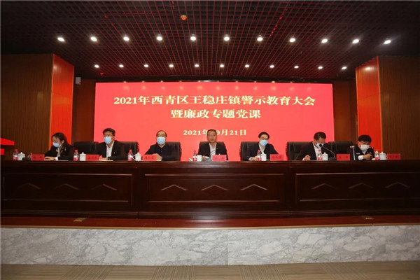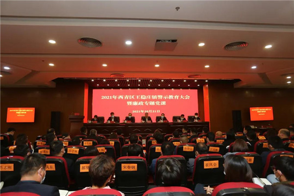 10月21日,西青区王稳庄镇召开2021年警示教育大会暨廉政专题党课。镇党委书记张军,区纪委组织部部长赵华章,区委第七督导组组长杨长宽出席会议,镇党委副书记、镇长杨洋主持会议,镇党政领导班子成员、全体中层、各村及社区两委班子成员参加会议。