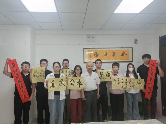 一支笔、一张纸、一碗墨。近日,亲和静园社区纪检监察工作联络站展开了一场别开生面的廉洁文化教育活动。活动现场,亲和静园社区居民化身“廉洁导师”,耐心地讲解“廉”字的起源、演变和书法书写技巧,手把手教全体社区干部写“廉”字、筑“廉”心。社区干部们纷纷执笔,在宣纸上认真书写“廉”字,一横一竖、一撇一捺,都饱含着对廉洁的敬畏与坚守。