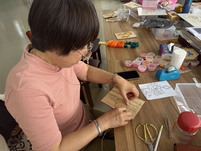 非遗润“廉”心,文化共传承。近日,彩虹城社区纪检监察工作联络站将非遗技艺、传统节日与廉洁文化巧妙融合,邀请社区能人宋阿姨为大家详细讲解非遗掐丝珐琅技艺,引导居民以“廉洁”为主题进行大胆创作。社区群众积极动手参与其中,用金丝勾勒出“廉”字轮廓,或填充以黑白两色釉料象征清正廉洁,或以莲花为元素,通过掐丝工艺展现“出淤泥而不染”的高洁品格。大家以釉为彩,执丝为笔,将廉洁的理念深深地镌刻在每一道工序之中。