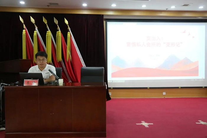 宣讲人围绕私人会所的隐形变异形式以及背后滋生的腐败风险,结合典型案例对“四风”问题,尤其是违规吃喝问题进行了深入细致的讲解。此次宣讲活动,为党员干部划清了纪律红线,敲响了廉洁自律的警钟。