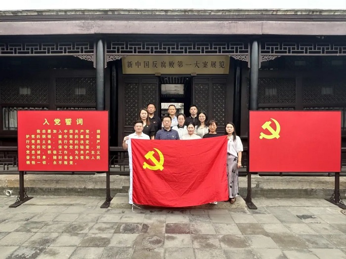 参观新中国反腐败第一大案展览过程中,全体党员仔细聆听讲解,有序参观了第一大案的各个展厅。一幅幅珍贵的历史老照片、一段段震撼人心的文字资料,生动展现了刘青山、张子善身为建国初期,党的高级领导干部没有经受住考验,最终成为历史的罪人,大家由此了解新中国成立以来,中国共产党在惩治腐败道路上的坚定决心。随后,全体党员面向党旗重温了入党誓词。
