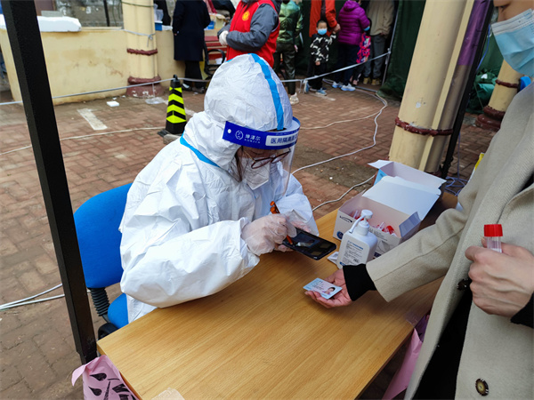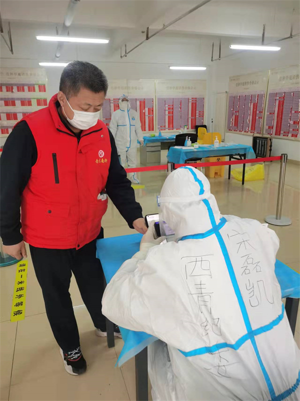 3月10日起,西青区各街镇陆续启动全员核酸检测工作。区纪委监委第一时间响应区疫情防控指挥部调度,迅速组建志愿者队伍,由委领导带队,兵分两路驰援赤龙南街、中北镇社区战疫一线,协助开展全员核酸检测工作,有效缓解防控一线人手不足问题。 疫情再起,有召必应。面对时间紧、任务重的全员核酸检测工作,区纪委监委下沉干部以“群众未到我先到,群众已走我未走”的工作态度,认真负责协助社区开展核酸检测,设置等候区、测温验码区、划定一米间隔线,参与消毒、维持秩序、测体温、信息录入等工作。对未随身携带身份证的群众,志愿者耐心细致地帮助他们扫描二维码、注册、登记,不厌其烦地一次次向他们解释使用方法,与社区工作者共同做好辖区群众核酸检测工作。 (图为区纪委监委机关志愿者在大筛现场中进行人流引导、秩序维护、现场指引,切实当好检测员、勤务兵。) (图为区纪委监委机关志愿者在大筛现场身着防护服,聚精会神进行身份信息录入,保障核酸检测工作有序进行。) 疫情当前,西青区纪委监委党员干部一以贯之用认真的态度、不怕苦不怕累的精神与新冠病毒赛跑,全力以赴支援疫情防控,用实际行动守护百姓健康安全,共同迎接疫霾消散、春暖花开!