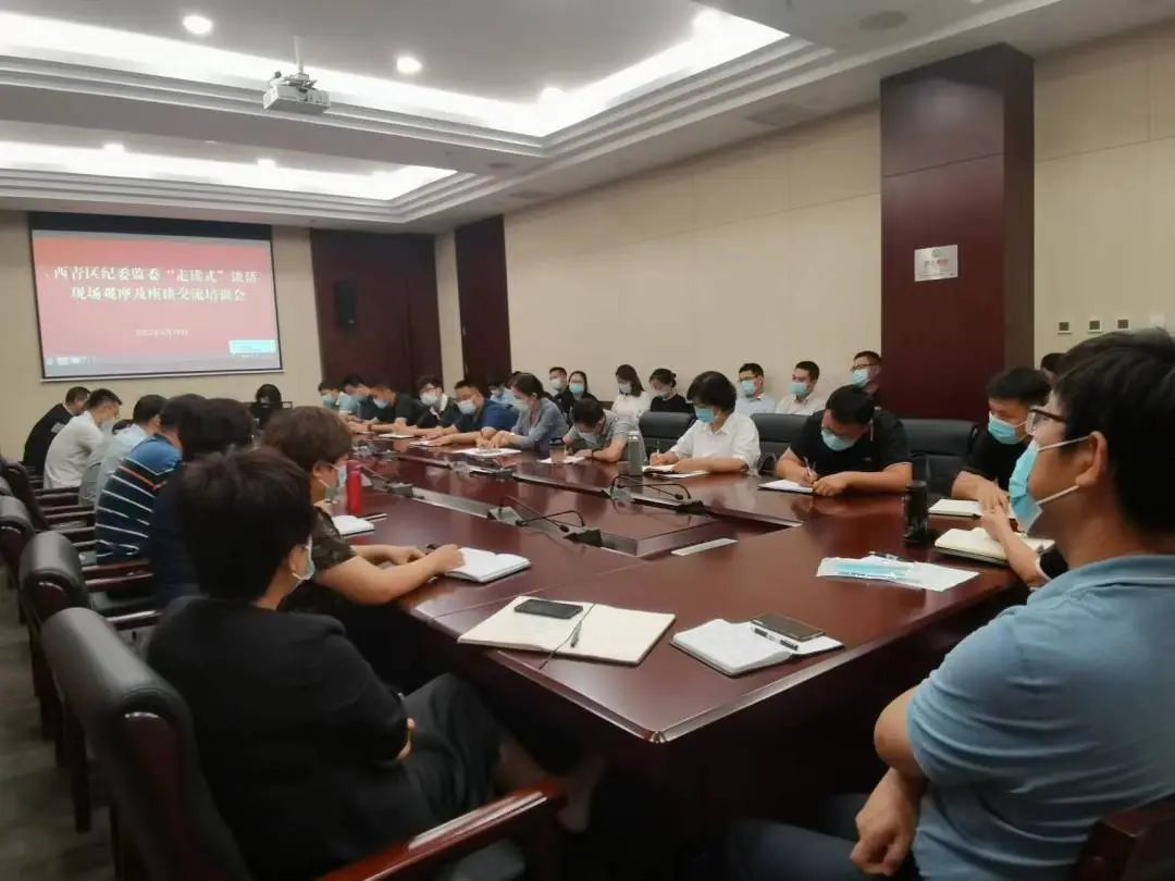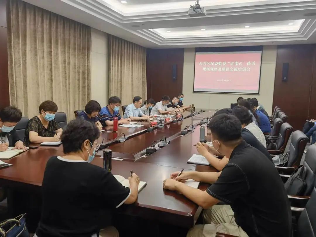 西纪动态 为巩固和深化全市纪检监察干部提升一体推进“三不腐”能力水平培训班学习成果,切实提高纪检监察干部业务能力素质,不断推动纪检监察工作规范化、法治化、正规化水平再上新台阶,近日,区纪委监委举办“走读式”谈话现场观摩及座谈交流培训会。区纪委监委有关领导班子成员、第一至第三监督检查室、第四至第六审查调查室、乡镇室及第一至第六派驻纪检监察组全体干部参加。 会上,区监委委员、审理室主任刘喆同志对全委2022年上半年案件质量情况进行了通报,并就案件质量暴露出的共性问题和突出难点进行重点解读和专题辅导。 区纪委监委第一至第三监督检查室相关负责同志,分别选取今年以来开展的比较典型的“走读式”谈话进行现场分享,并对“走读式”谈话中涉及的审批报备、制定谈话方案和安全预案、谈话技巧要点等方面内容,以及如何做好思想政治工作、人文关怀、保证安全以及组内人员协调配合等经验进行交流。 区纪委监委第一派驻纪检监察组干部罗景耀同志围绕“工作有规范”“办案有深度”“谈话有方法”“生活有温度”四个方面内容,分享了近期参与市纪委专案的工作体会和认识,并就查办案件中的外出调证、审批权限使用及人员调配等方面内容,提出自己的思考成果和工作建议。 现场与会同志分别结合各自查办案件以及开展“走读式”谈话的工作情况,进行随机互动交流,在分享收获体会的同时,对案件查办过程中存在的问题和不足进行剖析总结,进一步明确今后工作的思路和方向。 区纪委监委相关领导班子成员对现场观摩和座谈交流情况进行点评发言。会议指出,要统一思想,提高站位,聚焦监督执纪问责主责主业,保持严的主基调,强化正风肃纪反腐,切实发挥监督保障执行,促进完善发展作用;要筑牢安全底线,贯彻落实全市纪检监察机关审查调查安全工作会议精神,做好安全首课以及领导首谈制,不断消除安全隐患,防范安全风险,做好“走读式”谈话安全工作;要强基赋能,提高本领,落实好全员培训任务,加强实践锻炼和实战演练,锻造政治素质高、忠诚干净担当、专业化能力强、敢于善于斗争的过硬队伍,以实际行动迎接党的二十大胜利召开。