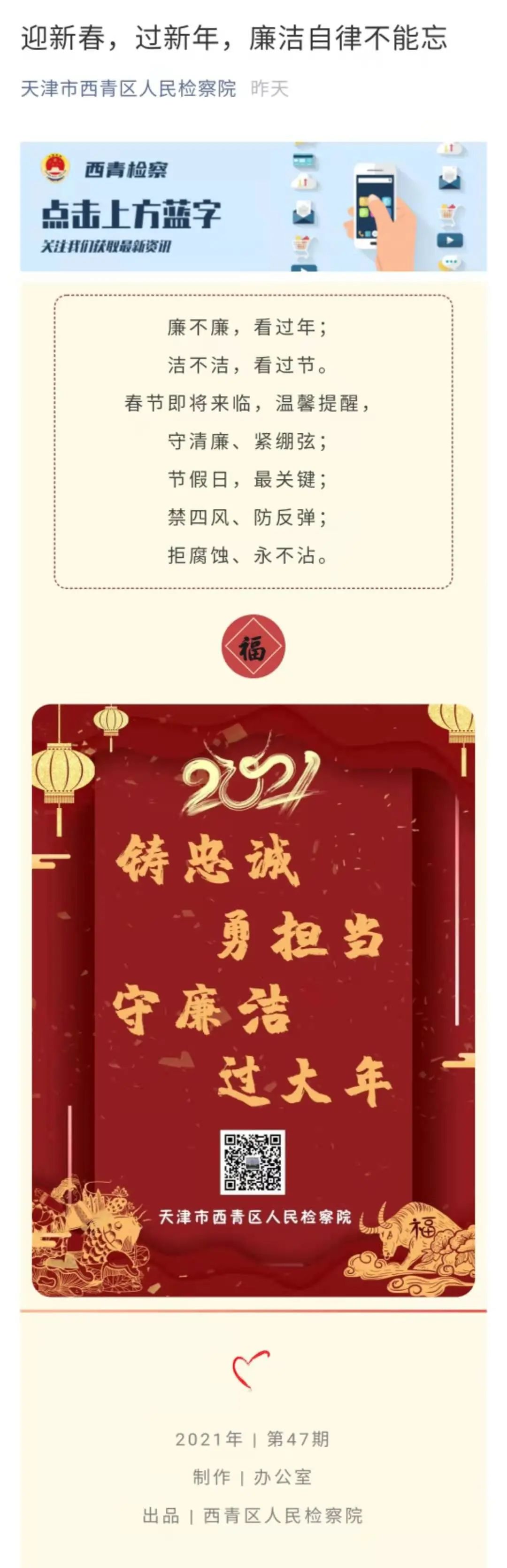 今天推出第五期:《西青区人民检察院:注重廉洁文化建设 打造清正廉洁机关》