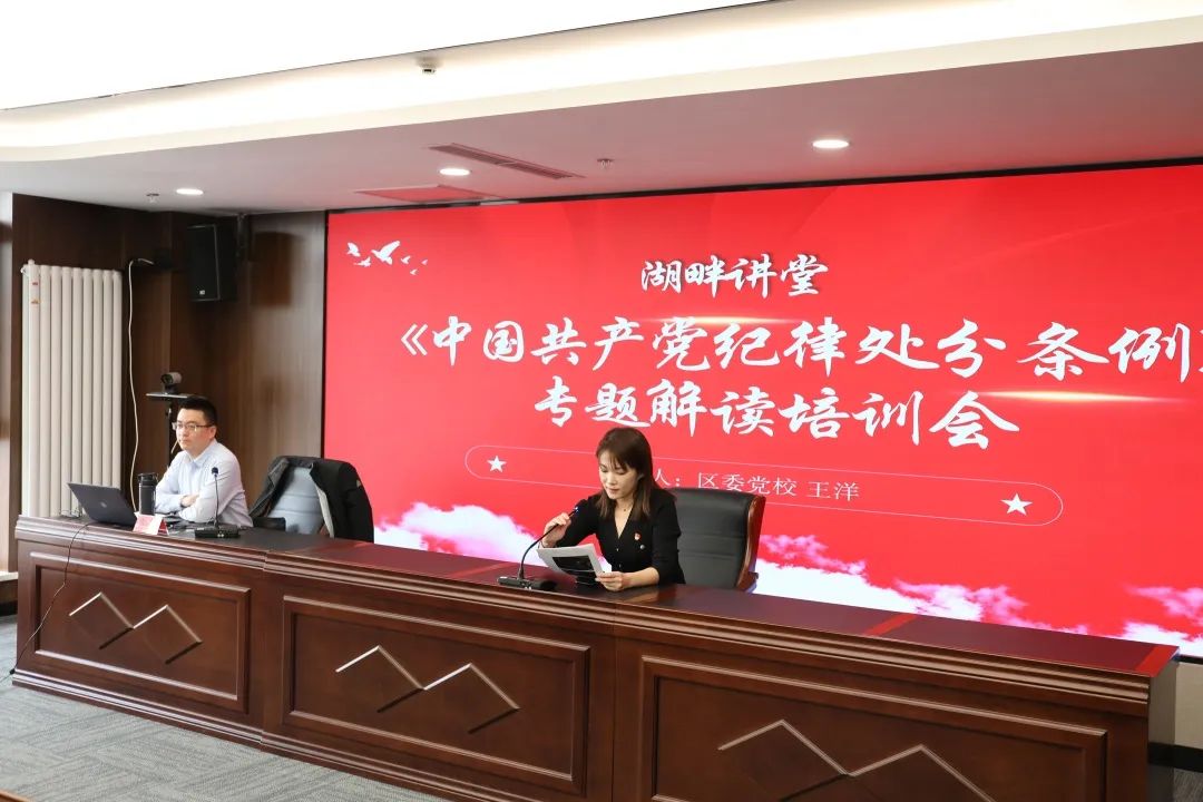 为进一步增强党员干部纪法意识,不断增强政治定力,助牢思想防线,日前,津门湖街纪工委邀请区委党校优秀青年骨干教师王洋同志围绕《中国共产党纪律处分条例》进行专题解读培训,街道领导班子成员、机关中层干部、社区党组织书记、纪检监察联络站站长及志愿监督员参加学习培训。