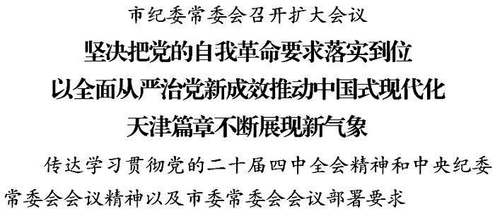 会议指出,党的二十届四中全会是在向第二个百年奋斗目标进军的新征程上举行的一次十分重要的会议。习近平总书记在全会上的重要讲话,深刻阐释了“十五五”时期经济社会发展的重大意义、面临形势、指导思想、重大原则、重大战略任务和根本保证,为我们深入学习贯彻全会精神提供了行动指南。全市各级纪检监察机关要深入学习贯彻四中全会精神,与学习贯彻习近平总书记视察天津重要讲话精神结合起来,更加坚定拥护“两个确立”、坚决做到“两个维护”,切实把思想和行动统一到党中央决策部署上来,坚决把党的自我革命要求落实到位,从全局谋划一域、以一域服务全局,以全面从严治党新成效推动中国式现代化天津篇章不断展现新气象。