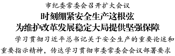 日前,市纪委常委会召开扩大会议,学习贯彻习近平总书记关于安全生产的重要论述和重要指示精神,传达学习市委常委会会议部署要求,研究贯彻落实措施。市委常委、市纪委书记、市监委主任王庭凯主持会议并讲话。