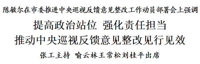 陈敏尔强调,推进整改落实,明责担责是关键。要加强政治领导、责任传导、工作督导,坚持系统施治、标本兼治,从严从实、动真碰硬,以最严要求、最硬作风、最好状态,确保巡视“后半篇文章”取得实实在在成效。强化责任担当,切实担负起市委主体责任和主要负责同志第一责任人责任,以身作则、带头整改,市领导同志履行“一岗双责”,尽职尽责落实好分管领域整改任务,各级各部门各就各位、各负其责,凝聚形成整改合力。优化工作机制,具体化、清单化、行动化推动整改,倒排工期、对账销号,强化督办和跟踪问效,自觉接受群众监督,对整改不力、敷衍整改、虚假整改的抓住典型、严肃问责。砥砺能力作风,进一步提高政治判断力、政治领悟力、政治执行力,增强攻坚克难的本领,弘扬求真务实的作风,干字当头、实字托底,绵绵用力、久久为功,以钉钉子精神清除各类顽瘴痼疾。深化成果运用,把巡视整改融入日常工作、融入深化改革、融入全面从严治党、融入班子队伍建设,把经济社会发展方面整改措施纳入我市“十五五”规划纲要,用改革的思路、办法、举措推动整改、破解难题,做到以巡促改、以巡促建、以巡促治。